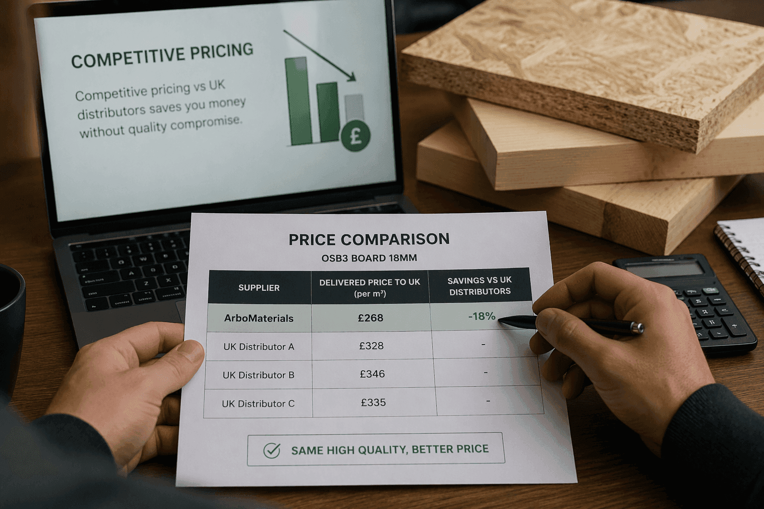 We help UK builders and developers source high-quality timber, boards, and natural insulation materials directly from trusted European manufacturers.